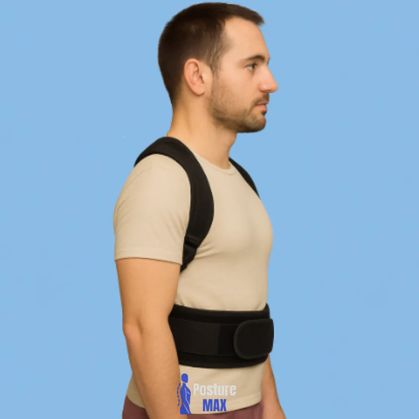 El corrector de postura PostureMAX™está diseñado para mejorar tu postura y aliviar el dolor relacionado con una mala alineación, incluyendo escoliosis y molestias en hombros, espalda y cuello.